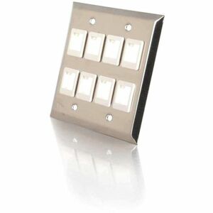 C2G 8-Port Double Gang Multimedia Keystone Wall Plate – Stainless Steel