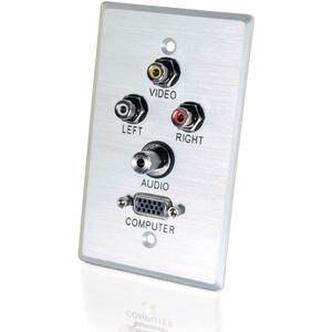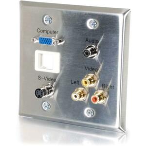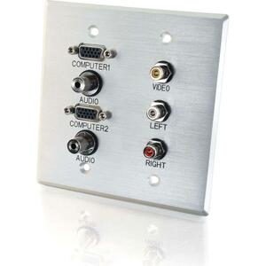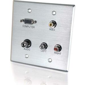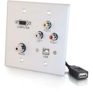 C2G Double Gang HD15 + 3.5mm + RCA A/V + USB Wall Plate – Brushed Aluminum