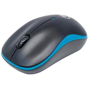 Manhattan Success Wireless Mouse, Black/Blue, 1000dpi, 2.4Ghz (up to 10m), USB, Optical, Three Button with Scroll Wheel, USB micro receiver, AA battery (included), Low friction base, Three Year Warranty, Blister
