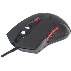 Manhattan Wired Optical Gaming USB-A Mouse with LEDs, 480 Mbps (USB 2.0), Six Button, Scroll Wheel, 800-2400dpi, Black with Red Buttons, Three Year Warranty
